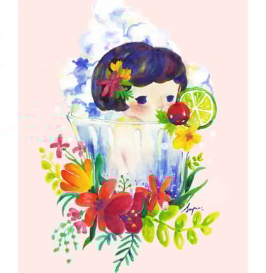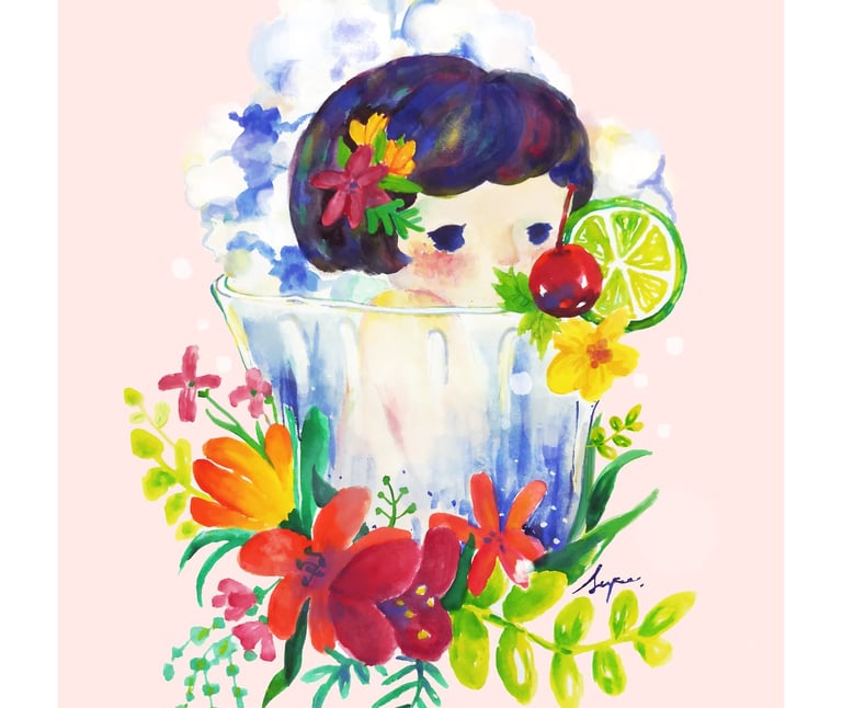 Bright flowers and a cool drink to show the happy and refreshing feeling of a hot summer day.