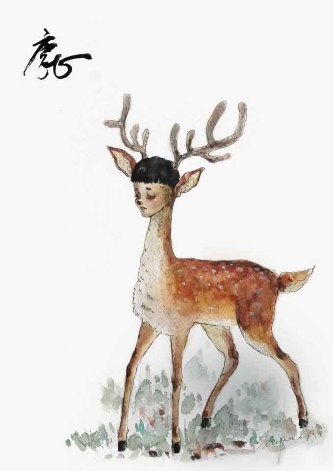 A gentle creature with antlers walking through the woods with a very peaceful and quiet face.
