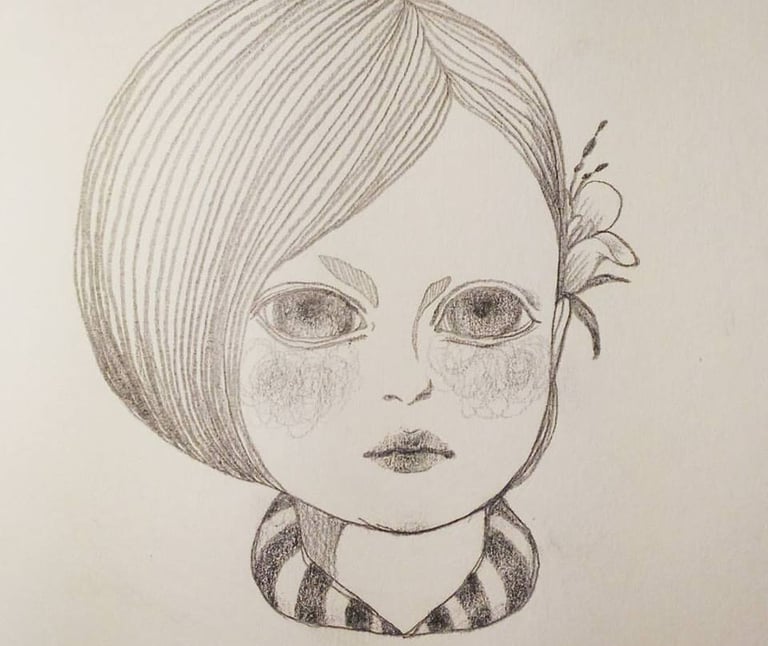 A simple but powerful sketch that shows a lot of emotion through the eyes and a single flower.